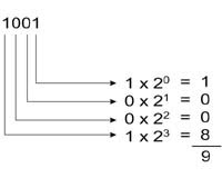 Berarti, Bilangan Biner 1001 perhitungannya adalah sebagai berikut :