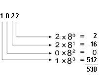Berarti, Bilangan Oktal 1022 perhitungannya adalah sebagai berikut :