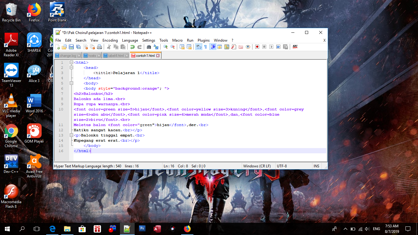 3.<h2>Balonku</h2> fungsi dari <h2> adalah memperbesar ukuran font
